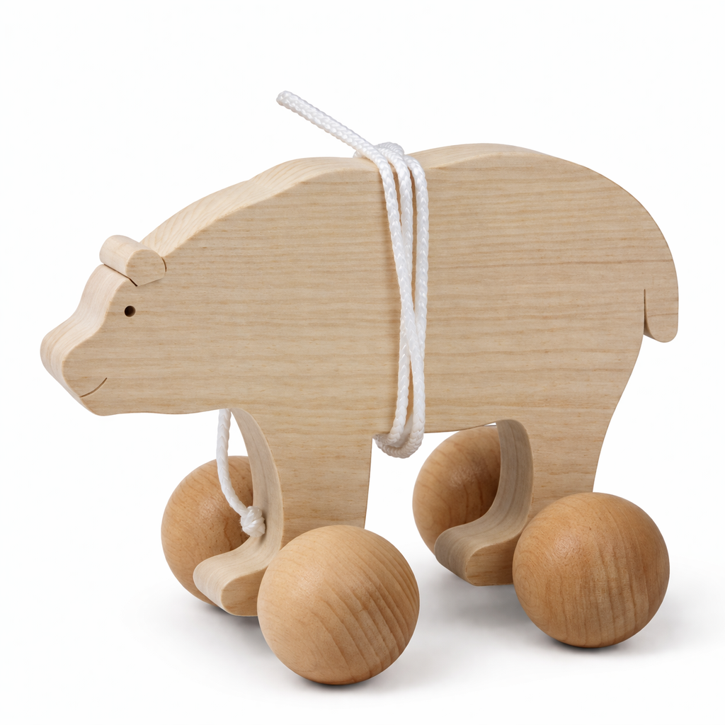 Avec cet ours en bois à tirer votre enfant entre dans une étape importante de sa vie : l’apprentissage de la marche. Dès ses premiers contacts avec cet ours à tirer il prend plaisir à le promener partout avec lui dans votre maison. Le promener l’encourage à se tenir debout et à marcher.